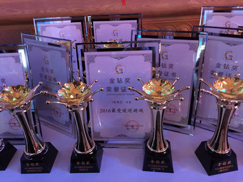 1月12日,2016廣東游戲產業協會年會暨“金鉆獎”頒獎典禮在廣州隆重舉行。谷得游戲憑借年內出色的表現獲得專家評審團的青睞,榮獲“2016年最具創新力企業”獎項,旗下游戲《世界2》也在眾多參選產品中脫穎而出,斬獲“2016最受歡迎游戲”獎項!