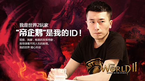 帝企鵝,《世界2》里不甘于人后的玩家,經常能在競技場上看到他廝殺PK的身影。在現實生活中,他是一名節目導演,喜歡新鮮和挑戰,對于所有的事物,有著超乎常人的興趣,卻多半淺嘗輒止,但這就是他的生活態度。