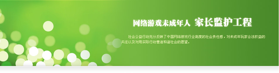 “網絡游戲未成年人家長監護工程”是一項由谷得游戲平臺根據國家有關規定而發起的一個項目,由中華人民共和國文化部指導,旨在加強家長對未成年人參與網絡游戲的監護,引導未成年人健康、綠色參與網絡游戲,和諧家庭關系的社會性公益行動。它提供了一種切實可行的方法,一種家長實施監控的管道,使家長糾正部分未成年子女沉迷游戲的行為成為可能。該項社會公益行動充分反映了中國網絡游戲行業高度的社會責任感,對未成年玩家合法權益的關注及對用實際行動營造和諧社會的愿望。