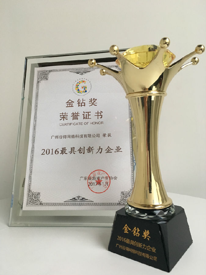1月12日,2016廣東游戲產業協會年會暨“金鉆獎”頒獎典禮在廣州隆重舉行。谷得游戲憑借年內出色的表現獲得專家評審團的青睞,榮獲“2016年最具創新力企業”獎項,旗下游戲《世界2》也在眾多參選產品中脫穎而出,斬獲“2016最受歡迎游戲”獎項!